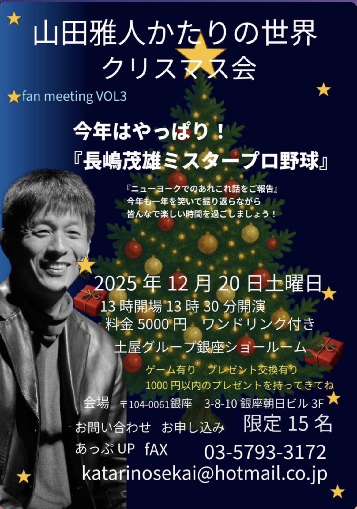 山田雅人「かたりの世界」クリスマス会 ファンミーティング VOL.3今年はやっぱり!「長嶋茂雄ミスタープロ野球」